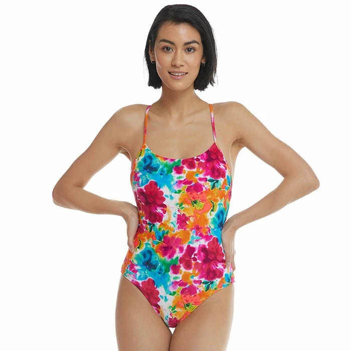 The vivid, punchy Volcano print is a kaleidoscope of colours pulled from the tapestry of plants and flowers that grow in the volcanic soils of tropic islands. The Body Glove London One-Piece Swimsuit features a scoop neck, fun back ring detail and removable soft cups for extra versatility and personalized comfort.