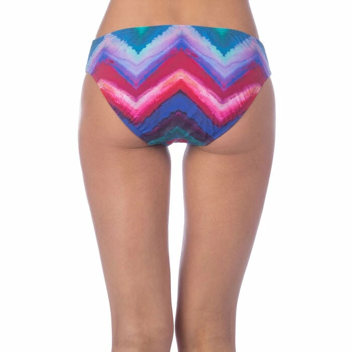 This hipster bottom by La Blanca features a jewel-toned ikat chevron stripe pattern. The classic and simple hipster design gives this bottom pairable options. In addition, the mid rise fit also offers moderate coverage in back.