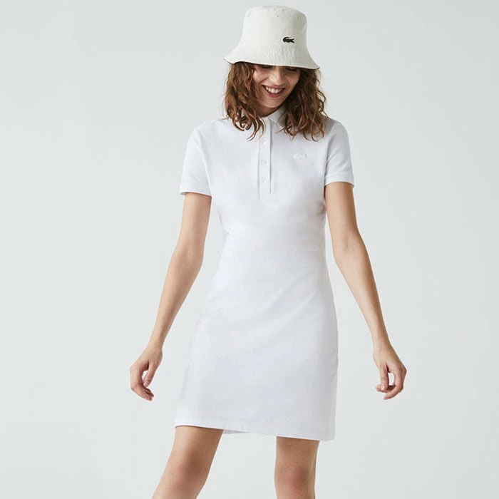 Wander about in pure Lacoste style with the timeless, feminine, slim-fitting Stretch Pique Polo Dress. Exquisite details include the mother of pearls buttons and mini cotton pique crafting.